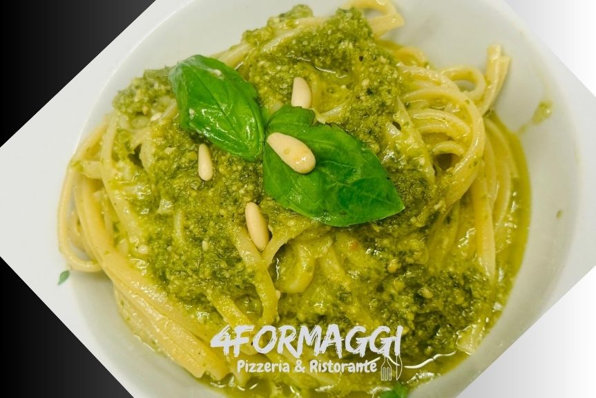 Linguine, pesto di basilico, pinoli.